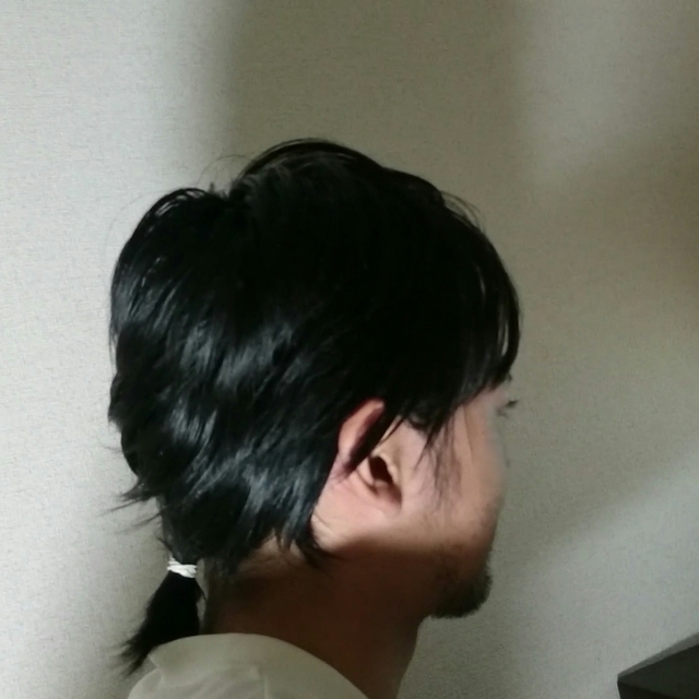 今週学校あるから、ぼちぼち垢落としに風呂入って、出来れば自分で髪も切りたいなと思ってたけど、こんなに髪伸びたの初めてだから、記念に襟足結った写真を撮って見てみたら、なんか妙な興奮を覚えた
